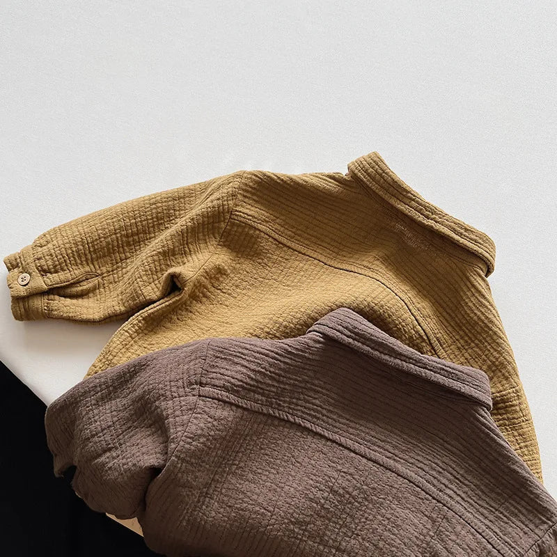 Introducing our toddler Crinkle Cotton Button Shirt! Made from soft, high-quality cotton, this versatile top is perfect for both hot and cold seasons. Its neutral color ensures it will attract attention while keeping your little one looking cute and fashionable. The simple solid look adds a trendy touch, making it a stylish addition to your toddler's wardrobe for any occasion.