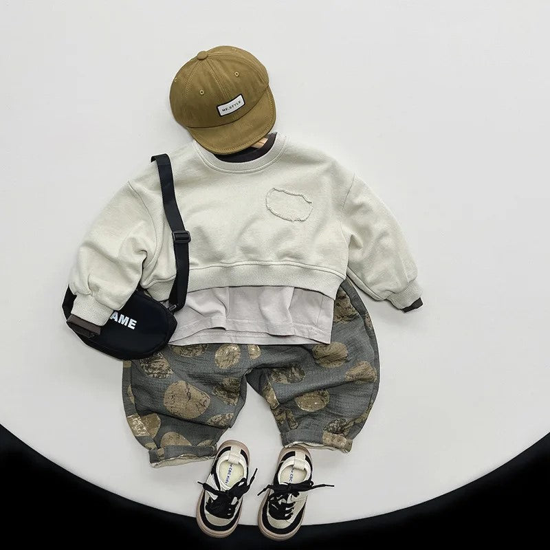 Introducing our toddler Drop Shoulder Cropped Crewneck Sweatshirt! Made from soft, high-quality cotton, this versatile sweatshirt is perfect for both hot and cold seasons. Its neutral color ensures it will attract attention while keeping your little one looking cute and fashionable. The oversized fit adds a trendy touch, making it a stylish addition to your toddler's wardrobe for any occasion.