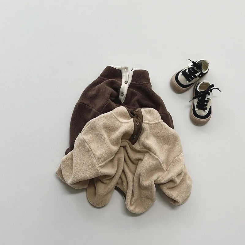 Half Button Fleece Turtleneck Sweatshirt - the ultimate combination of comfort, style, and warmth for your little one! This cozy, high-quality fleece sweatshirt is perfect for keeping your toddler snug during chilly days while offering a cute, coordinated neutral look. Perfect for playdates, and outdoor adventures, this piece is a versatile addition to any toddler’s wardrobe.
